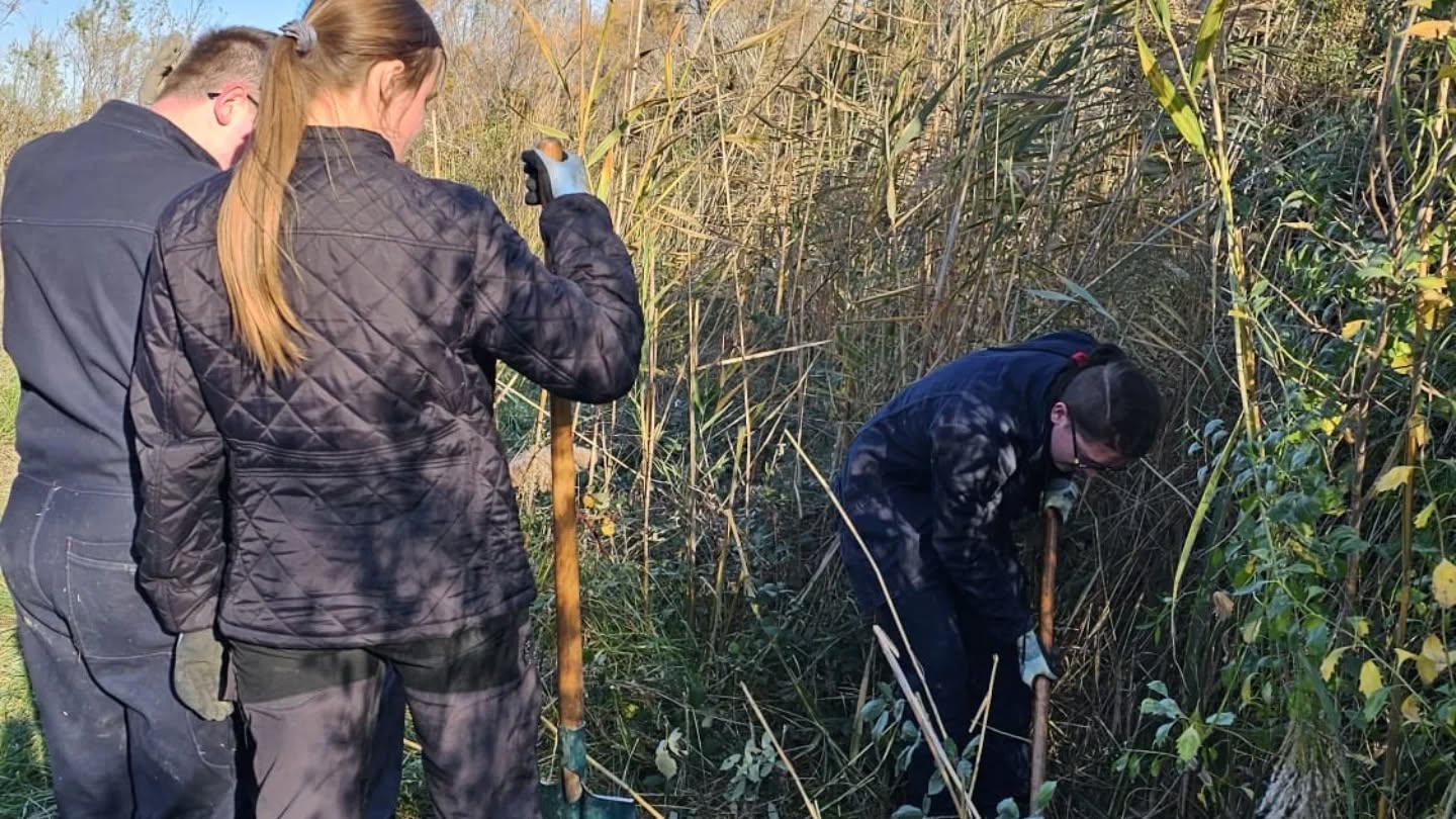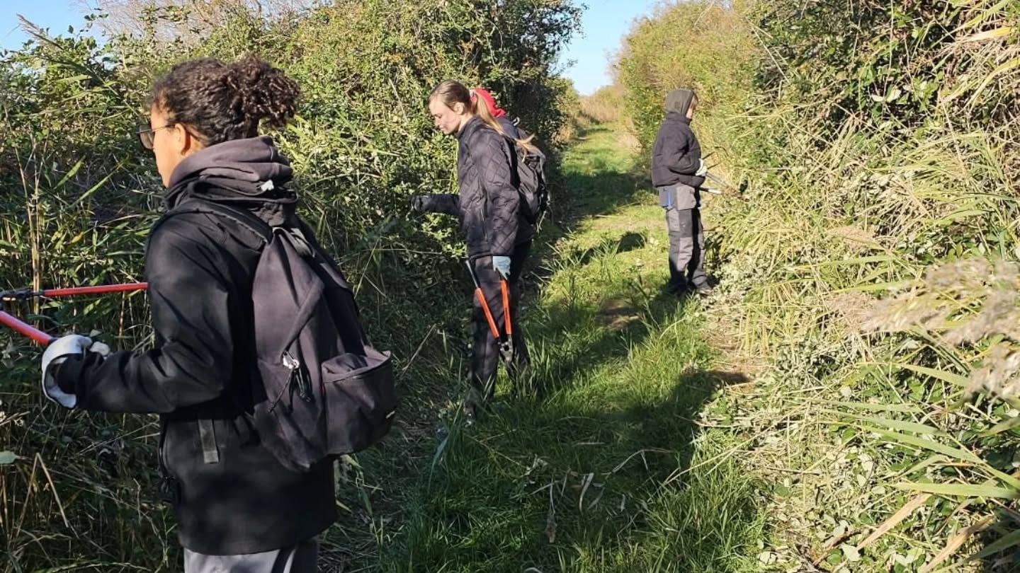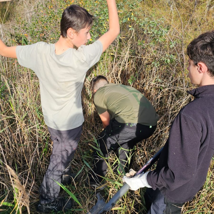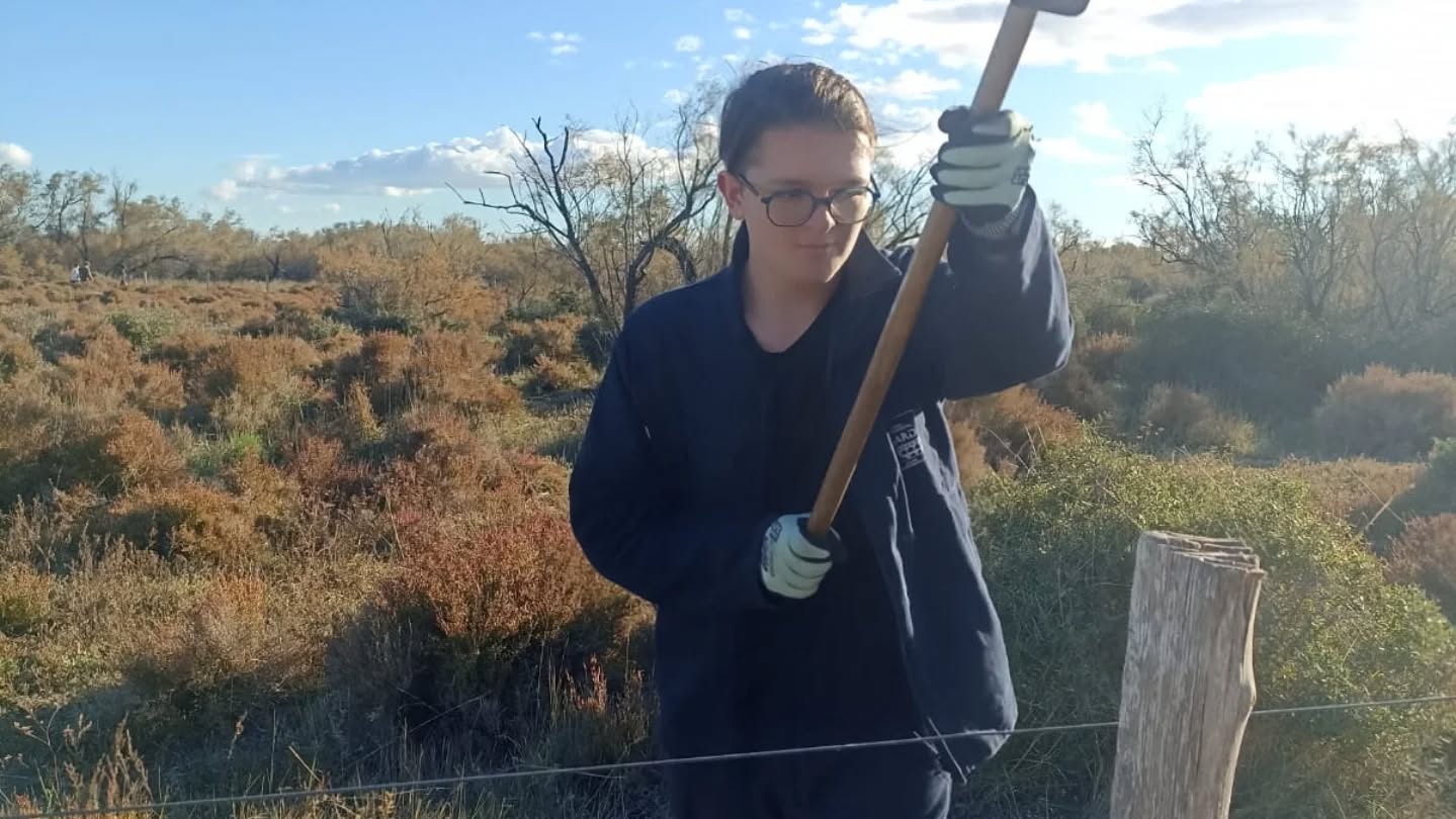 Les secondes NJPF ont débuté leur séjour par une rencontre avec Silke, garde et naturaliste, avant de se lancer dans l’arrachage du baccharis, plante invasive menaçant les zones humides.
