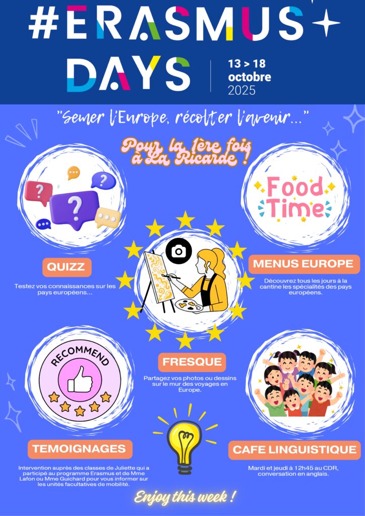 Du lundi 13 au vendredi 17 octobre 2025, le Lycée professionnel agricole La Ricarde vivra à l’heure européenne !