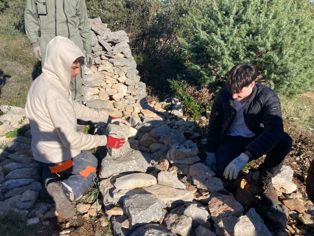 Encadrés par l’association Pierre Sèche en Vaucluse, les 1ʳᵉ GMNF ont découvert la technique de la pierre sèche, une véritable école de patience et de précision.
